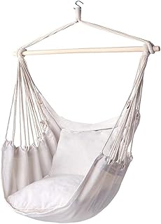ANPPEX Chaise Hamac Balançoire, avec 2 Coussins Rembourrés Supplémentaires et Barre de Support en Bois, Siège de Balançoire Suspendu Extérieur Intérieur, Contient Le Crochet, Sac de Transport