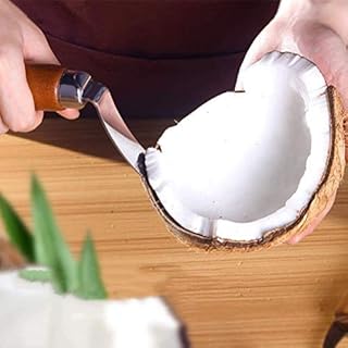 Jackallo Décapant de Noix de Coco en Acier Inoxydable avec poignée en Bois Durable ouvre-Noix de Coco pour Outils de grattoir de Noix de Coco de Cuisine