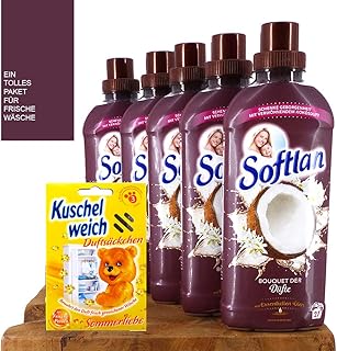 Studio.Munet Lot de 6 flacons d'adoucissant Softlan 5 x 650 ml / bouquet de parfums, noix de coco et fleurs blanches, parfum noix de coco / mini sac de rangement