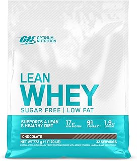 Optimum Nutrition Lean Whey Protéine Sans Sucre, Faible en Gras, Proteines avec Vitamines et Mineraux pour Musculation, Saveur Chocolat, 32 Portions, 772 g, l’Emballage Peut Varier