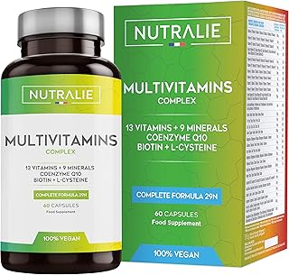 Multivitamines et Minéraux 29 Nutriments Essentiels | Complexe de Vitamines Vegetaliènne A, B, C, D, E, K, Biotine, L-Cystéine, Coenzime Q10 et 9 Minéraux | 60 Gélules | NUTRALIE