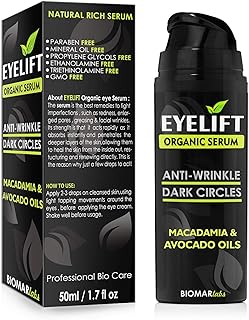 EYELIFT 100% Bio Organic Yeux Sérum Visage, Anti-Poches, Réduit les Rides & Cernes et ridules, Anti-Âge Hydratant Sérum Produit Naturel et Vegan Anti-rides et Anti-taches, Contour des Yeux Sérum, 50ml