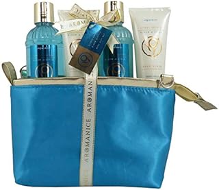 Coffret cadeau beauté pour femme - Trousse de bain bleu/dorée - Collection Aromanice - Agrumes/Orchidée