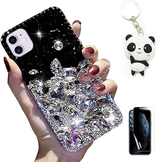 Artfeel Glitter Coque pour Samsung Galaxy Note 20,Bling Brillant Transparent Diamant Étui Paillettes Clair Cristal Strass Housse avec Porte-clés Panda Mignon et Protecteur d'écran,Noir + Blanc