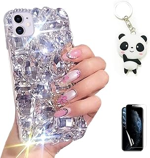 Artfeel Glitter Coque pour Samsung Galaxy S20 FE,Bling Brillant Transparent Diamant Étui Fille Femme Paillettes Cristal Strass Housse avec Porte-clés Panda Mignon et Protecteur d'écran,Blanc