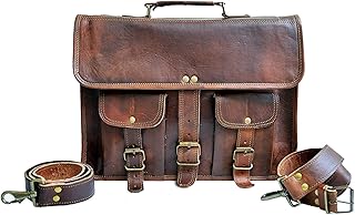 Sac en cuir véritable, porte-documents sac bandoulière cartable serviette cuir sac porté épaule, Messenger sacoche business ordinateur portable notebook mallette homme femme Marron Vintage