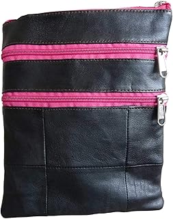 Porte Monnaie Cuir Noir Double Poche Trois 3 Zips Et Passant De Ceinture