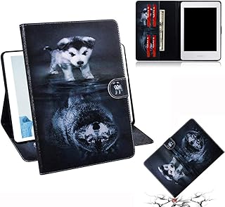 LMFULM® Étui pour Tous Les Kindle Paperwhite (Modèles 2012-2018 avec écran 6 Pouces) PU Cuir Poche Étui Flip Coque Protection Housse Stand Case Loup et Chien