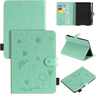 LMFULM® Étui pour Amazon Kindle Paperwhite (Modèles 2012-2018 avec écran 6 Pouces) PU Cuir Poche Cas Flip Coque Protection avec Veille/Sommeil Housse Stand Case Gaufrage Chat et Abeille Vert