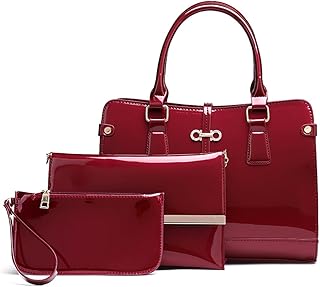 Sacs portés Main Femme Tendance Vernis Ensemble 3 pièces Sacs portés épaule Sacs bandoulière Sac a Main Portefeuille Vin Rouge
