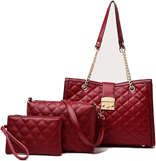 Ensemble de Sacs a main avec 3 pièces pour Femme Sac portés épaule Sac a Bandoulière Portefeuille Rouge