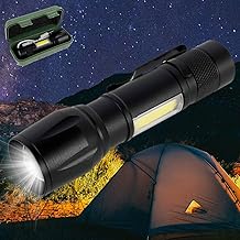 Lampe de Poche LED Rechargeable 6000 Lumens Puissante Lampe Torche LED Tactique Zoomable 5 Modes D'éclairage Torche Extérieure étanche pour Camping Randonnée Utilisation D'urgence, Batterie Incluse