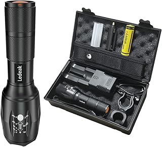 Ledeak Torche Lampe de Poche LED Ultra Puissante, Rechargeable USB Tactique Militaire Torche, IPX5 étanche, 5 Modes d'éclairage Ajustable Lampe Torche(18650 Pile Rechargeable incluse)