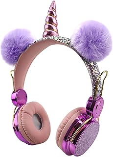 SOLUSTRE Casque pour Enfants Licorne Écouteurs Filaires avec Bandeau Réglable Écouteurs de Licorne Scintillants pour Filles sur L'oreille Casque D'école Anniversaire Cadeaux de Licorne de