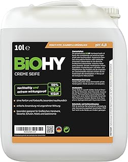 BiOHY Savon crème liquide (Bidon de 10l) | Recharge de Savon à Mains Doux, hydratant et inodore du Secteur végétal sans Phosphate | sans Parfum ni Colorant (Creme-Seife)